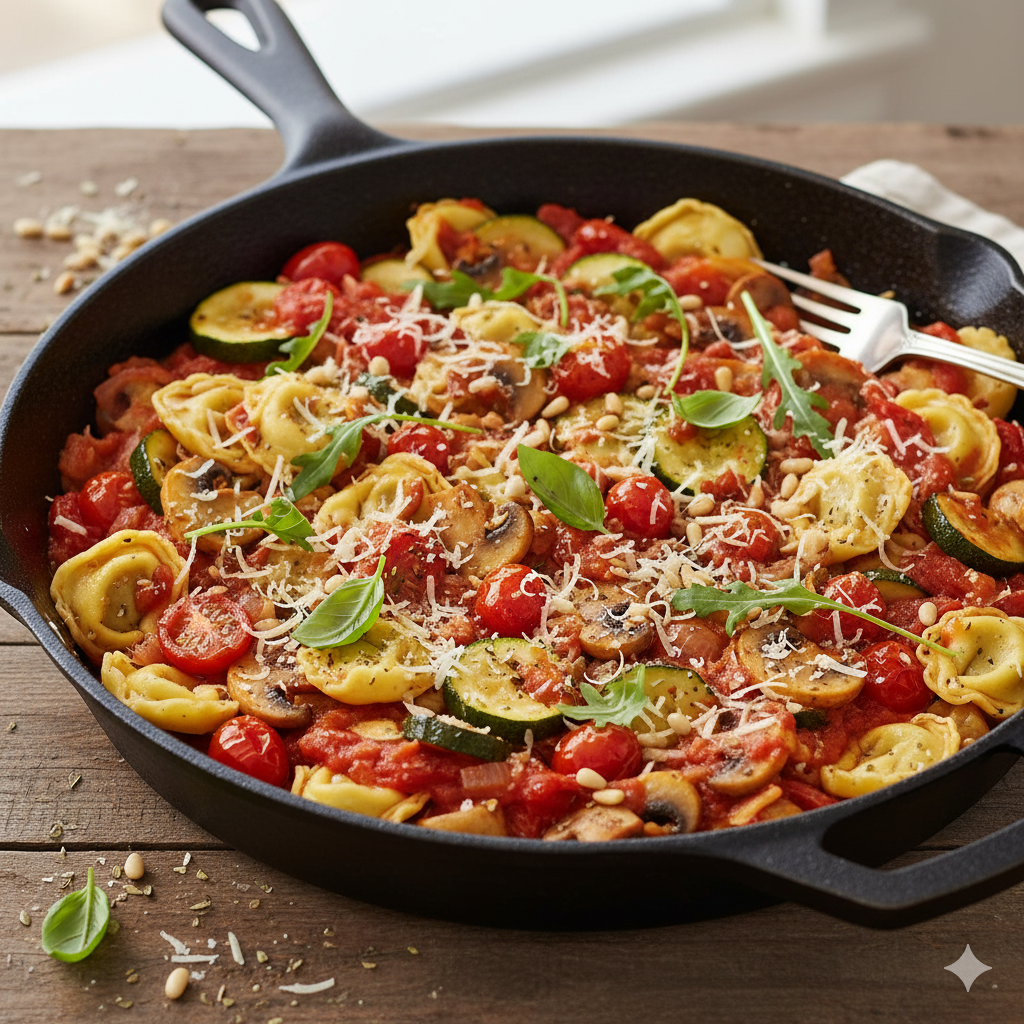 - Tortellini unterheben – vorsichtig untermischen, alles kurz durchwärmen.